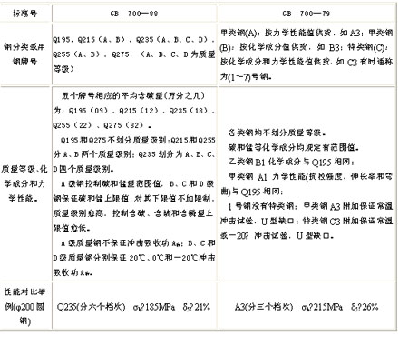 ?3 Q系列碳素結(jié)構(gòu)鋼 碳素結(jié)構(gòu)鋼新、舊標(biāo)準(zhǔn)的對比見表1。